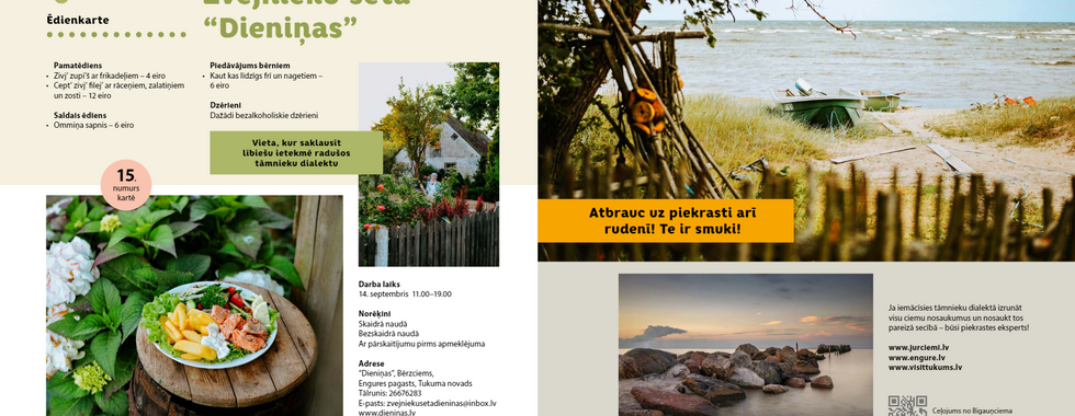 Akcijas brošūru ar ēdienkartēm var lasīt te - https://www.visittukums.lv/pdf_viewer/majas_kafe_2024_web.pdf